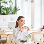 Gli ospiti sono invitati al ristorante Port Solacz a godere del cibo squisito.